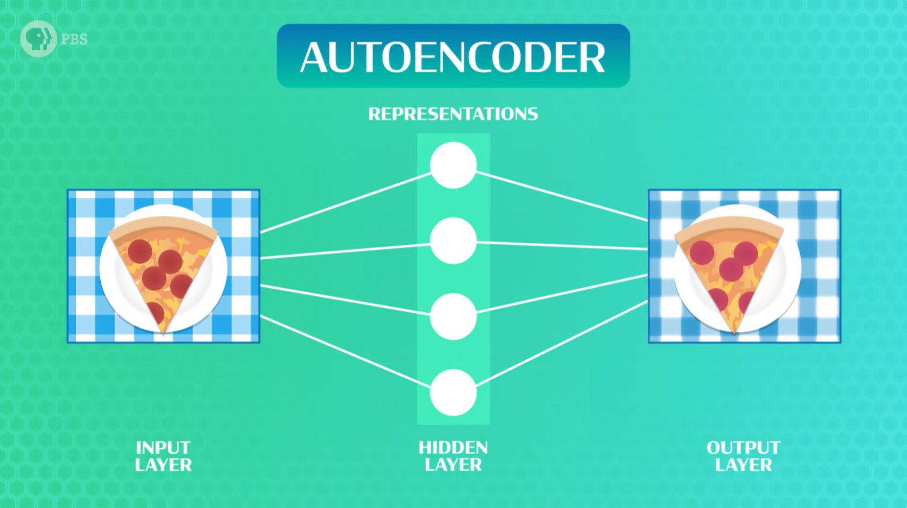 有多种方法将无监督学习与表征学习结合使用,让人工智能比较图像。例如,有一种叫做 自编码器(autoencoder) 的神经网络,它使用相同的权重和偏差的基本原理来处理输入,将数据传递到隐藏的神经元层,最后传递到预测输出层。换句话说,输入是一张图像,隐藏层包含表示,输出是原始图像的完整重建。