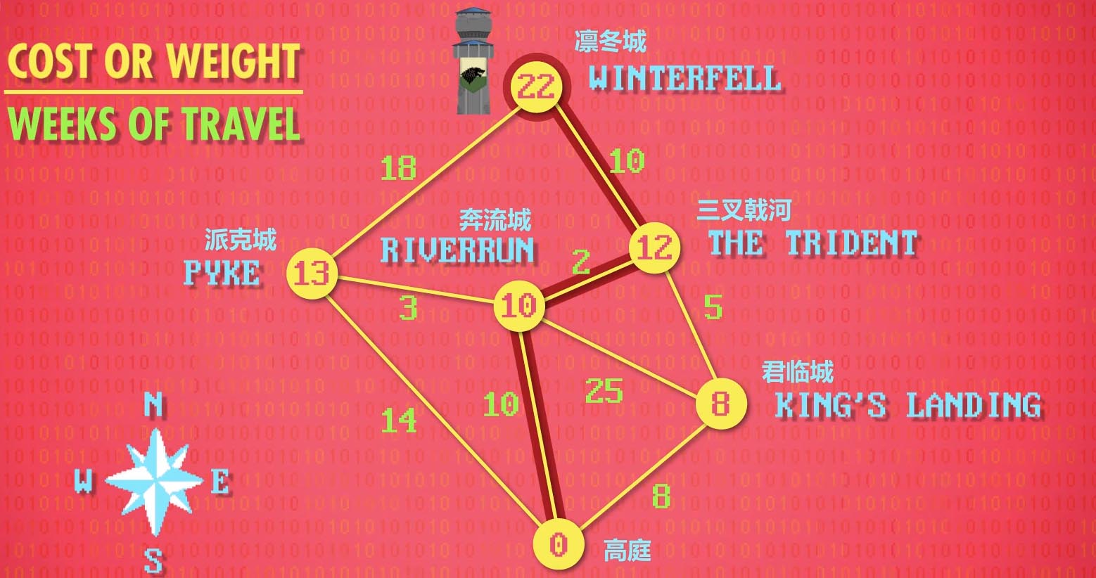 图搜索是另一种算法,图是一种用线连起来的一堆节点,从一个节点到另一个节点有不同的成本,称为 权重。如何用最少的成本,从一个节点到达另一个不相邻的节点呢?最简单粗暴的方法是把所有可能的走法都列出来,但这样的复杂度是 O(n!),比 O(n*n) 还糟糕。解决这个问题的一个经典算法是一位理论计算机科学家 Edsger Dijkstra 发明的,因此称为 Dijkstra 算法,他会从开始节点向相邻节点走,并记录每个节点的成本,到达下一个节点后,再继续向相邻的节点走,记录第一步跟第二步的成本和,一直到目标节点,找出成本最小的一条路径。