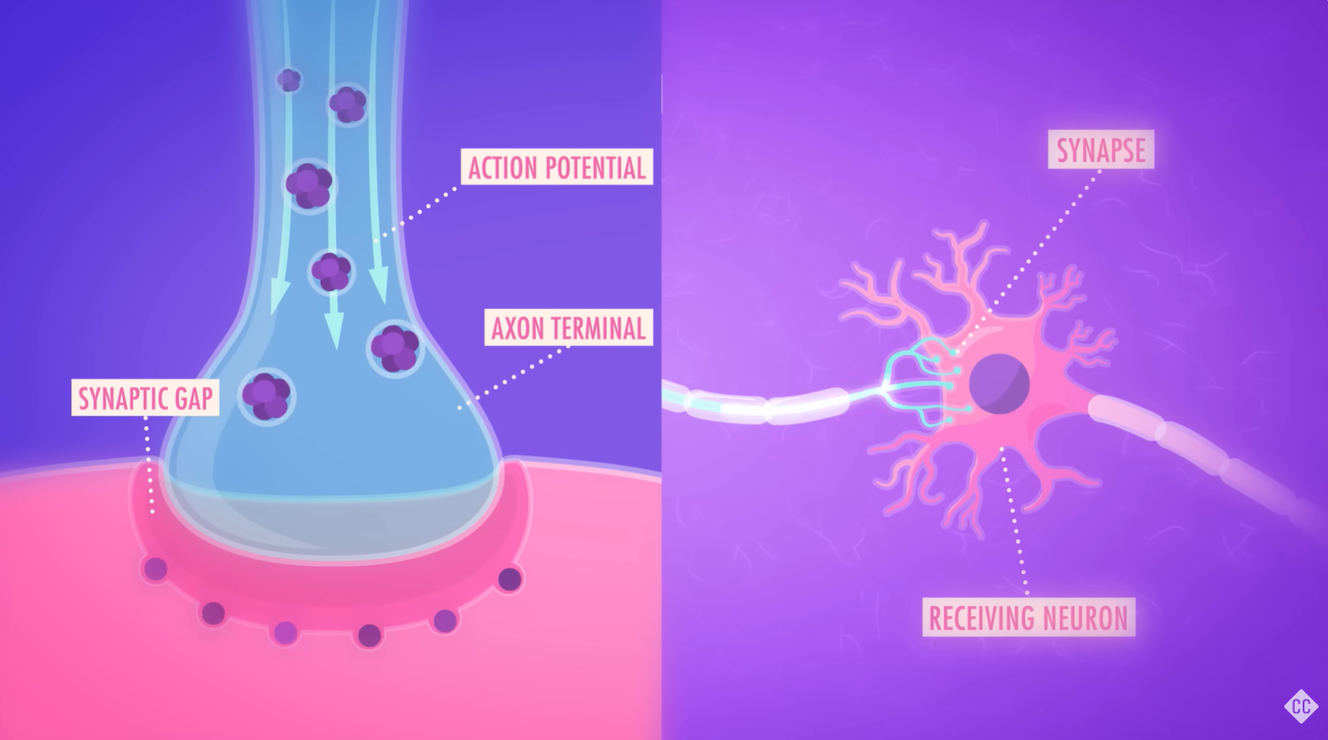 神经元之间并不直接接触,它们通过一个极小的间隙进行“隔空对话”,这个缝隙叫作 突触间隙 (Synaptic gap),相关的部位称为 突触(Synapse)。当电脉冲传到轴突末端时,会释放出名为 神经递质 (Neurotransmitters) 的化学信使。它们像钥匙和锁一样滑入下一个神经元的受体中,触发兴奋或抑制反应,随后多余的递质会被重新吸收,这个过程叫重摄取 (Reuptake)。